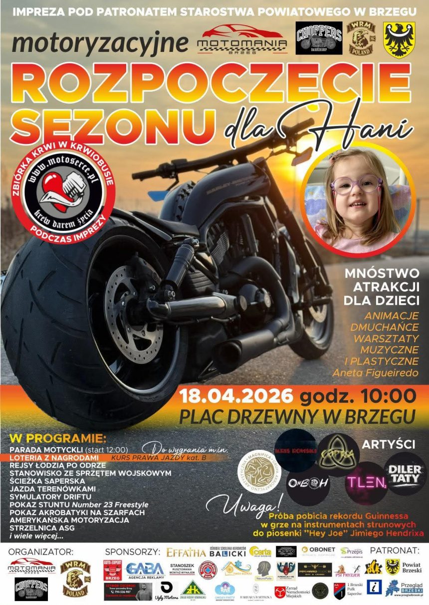 Zapraszamy wszystkich motocyklistów, miłośników motoryzacji oraz całe rodziny na wyjątkowe wydarzenie motoryzacyjne połączone ze zbiórką krwi dla Hani 18.04.2026 Start:…