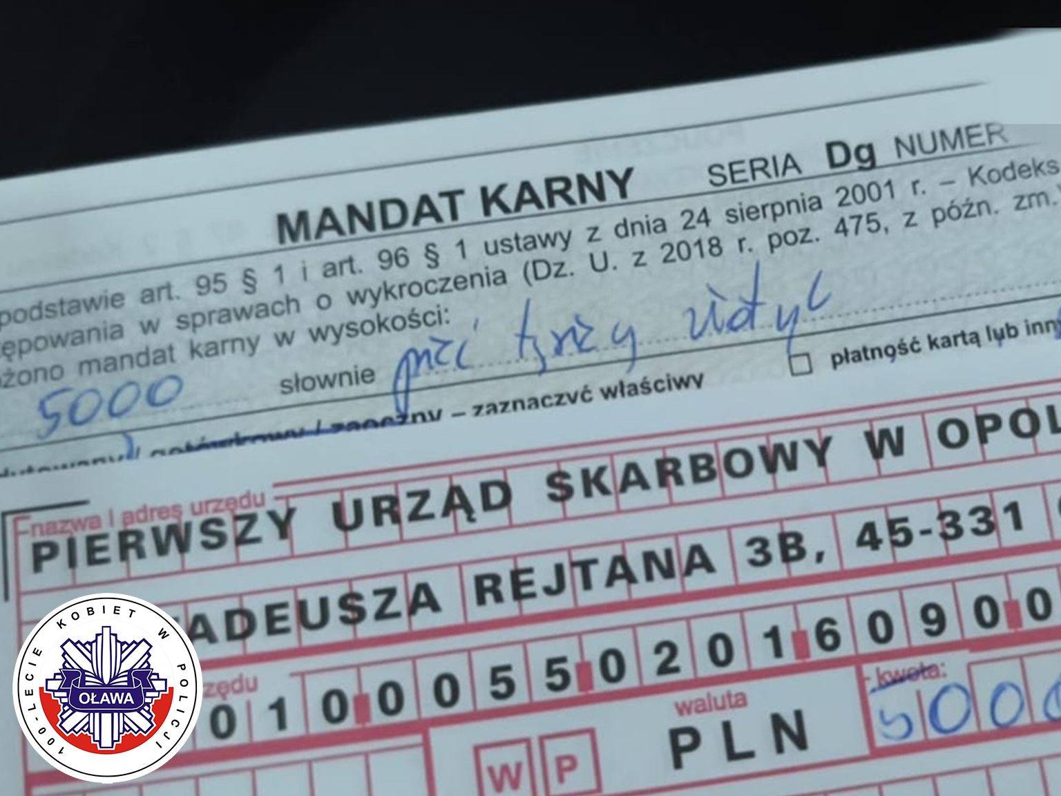 Zgodnie z obowiązującym taryfikatorem, policjanci nałożyli na niego mandat karny w wysokości 5000 złotych, a na jego konto trafiło 10 punktów karnych.