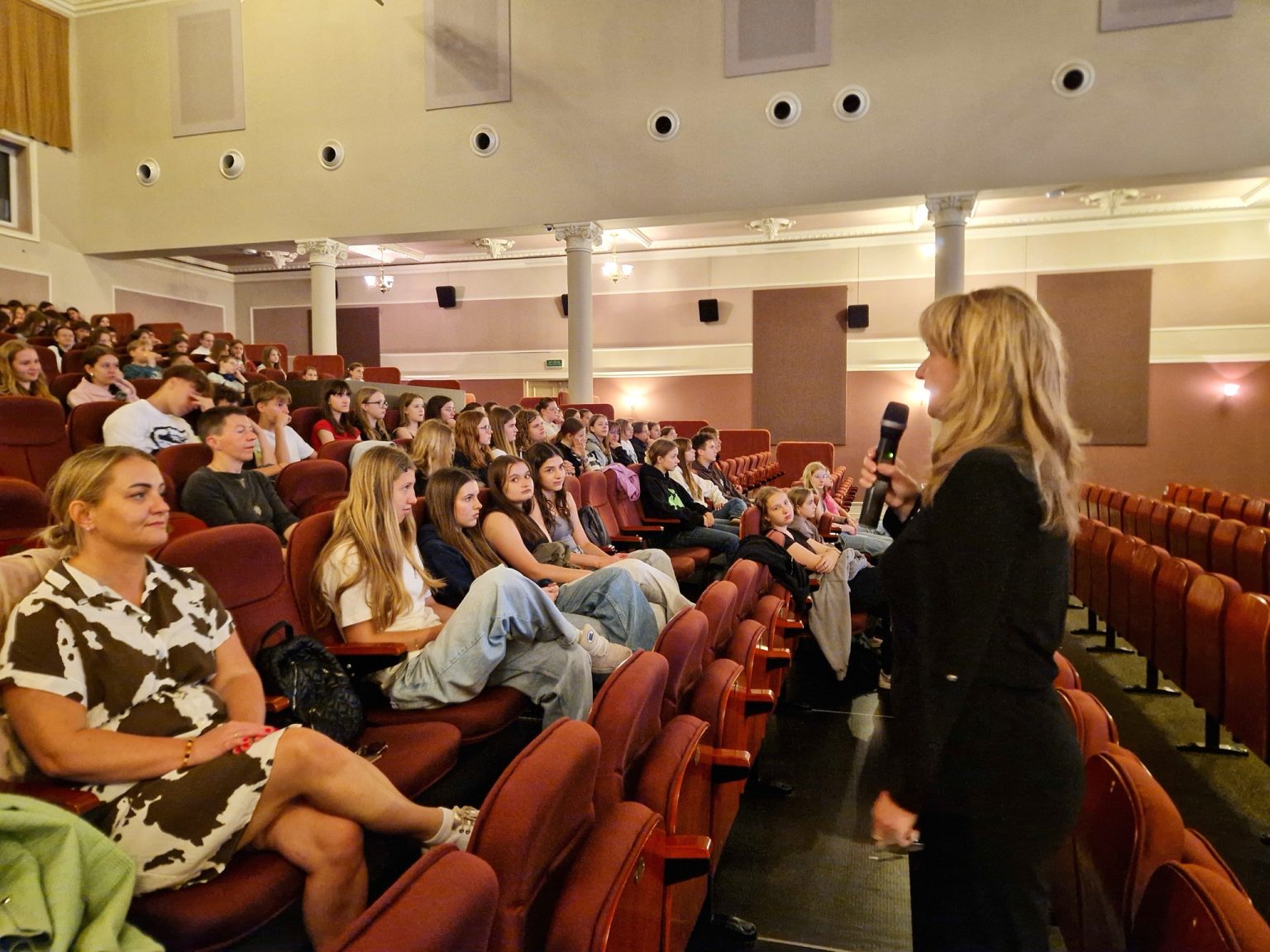 W imieniu swoim i burmistrza Oławy zwróciła się do nich wiceburmistrz Małgorzata Pasierbowicz: – Cieszę się, że dziś wszyscy możecie być z nami, bo ten seans jest adresowany do was. Chciałam wam podziękować za codzienność! Tylu wolontariuszy w jednym miejscu, to w Oławie nie jest nowość, bo jesteście wszędzie – wśród ludzi, którzy potrzebują pomocy, pomagacie też zwierzętom, jesteście aktywni. Dziękuję za to, że jesteście młodymi, dobrymi ludźmi. Dobro wraca po stokroć, sama tego doświadczyłam. Jako wieloletni pedagog całe życie pomagam innym i powiem wam, że to ogromna przyjemność, cieszę się, że jest tylu młodych ludzi, którzy zamiast spędzać inaczej czas, chcą spędzać go dając cząstkę siebie innym. Bardzo, bardzo wam za to dziękuję.