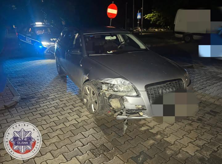 W sobotę 31 maja br. około godz. 21:50 dyżurny oławskiej komendy otrzymał zgłoszenie o kolizji drogowej w Jelczu-Laskowicach na ul. Oławskiej. Kierowca audi uderzył w latarnię drogową i próbował oddalić się z miejsca zdarzenia. Dzięki świadkom, którzy błyskawicznie zareagowali i zabrali mu kluczyki, mężczyzna został zatrzymany do czasu przybycia patrolu.